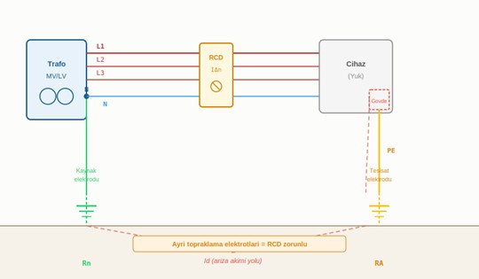 - Topraklama direnci ile RCD hassasiyetinin eşleştirilmemesi: RA ≤ UL/IΔn formülü ile doğrulama yapılmalıdır.