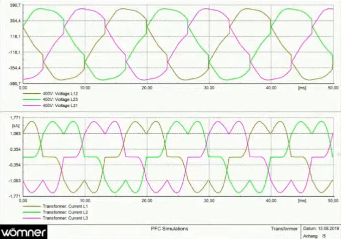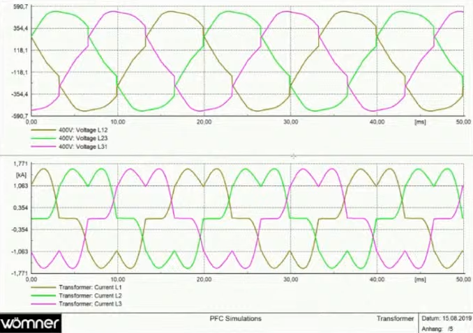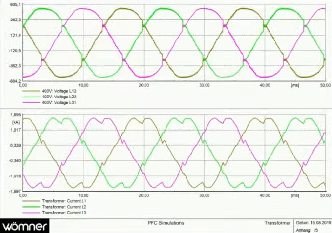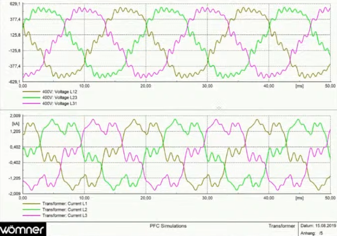 Yanlış veya düşük kaliteli reaktörlerin yüksek harmonikli ortamlarda manyetik saturasyona girdiği gösterilmiştir. %10 seviyesinde 5. harmonik içeren bir şebekede, yetersiz tasarlanmış bir reaktörün ±480 A pik akımlar ürettiği görülmüştür.